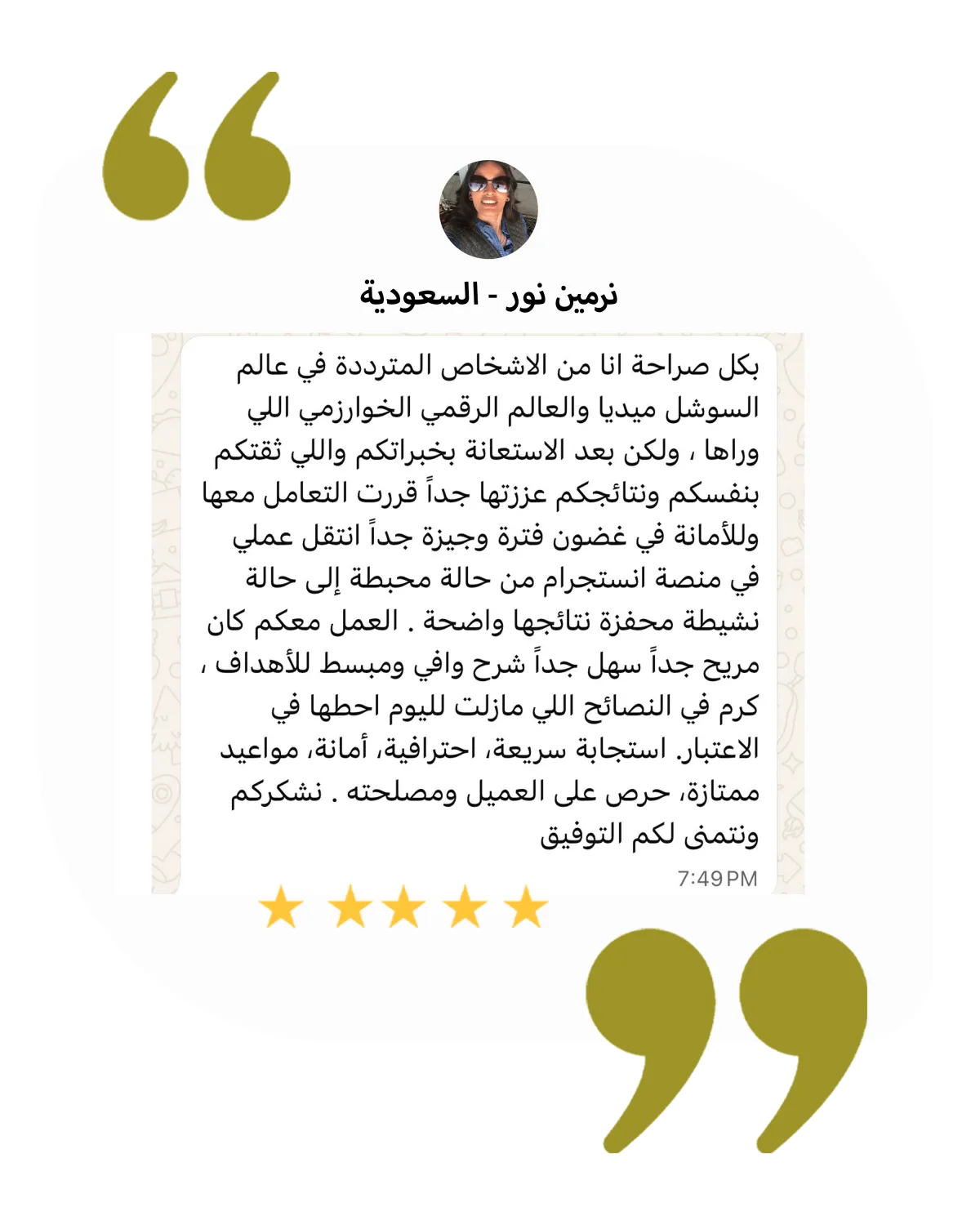 بعد التسليم، نتابع الأداء معك عبر واتساب.